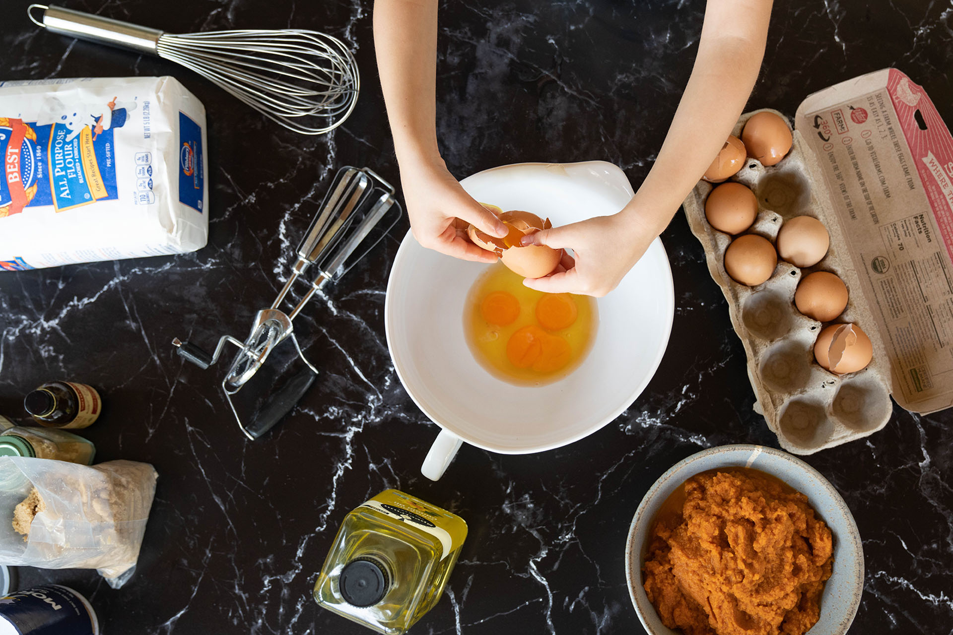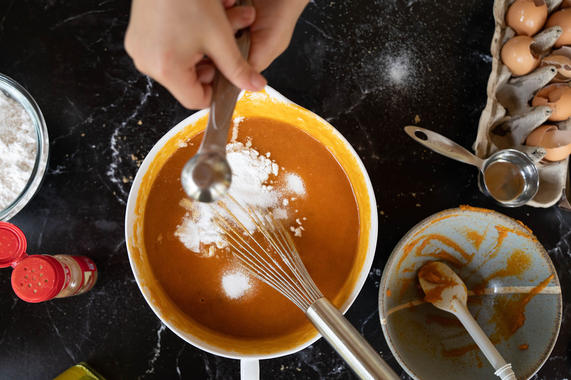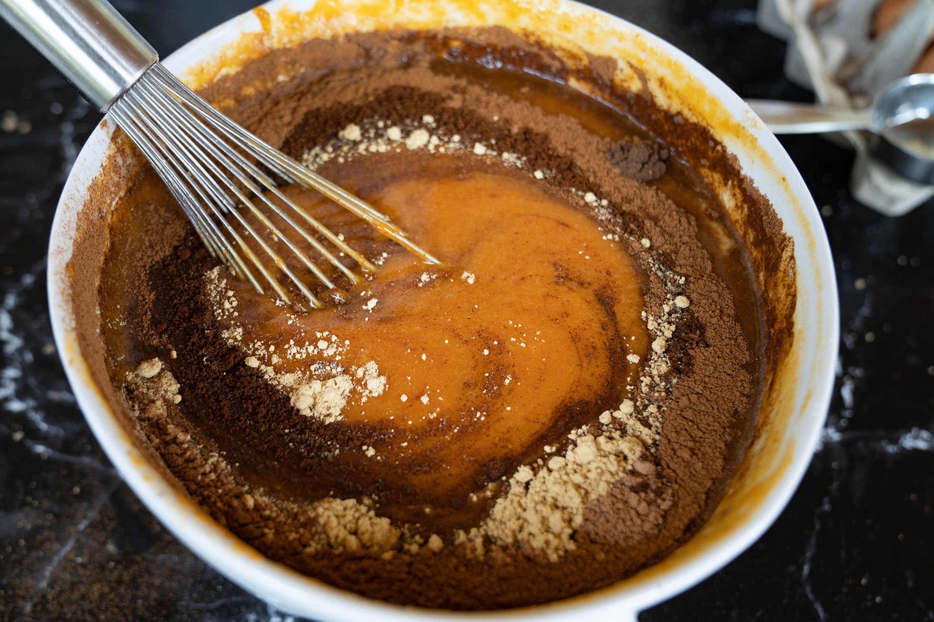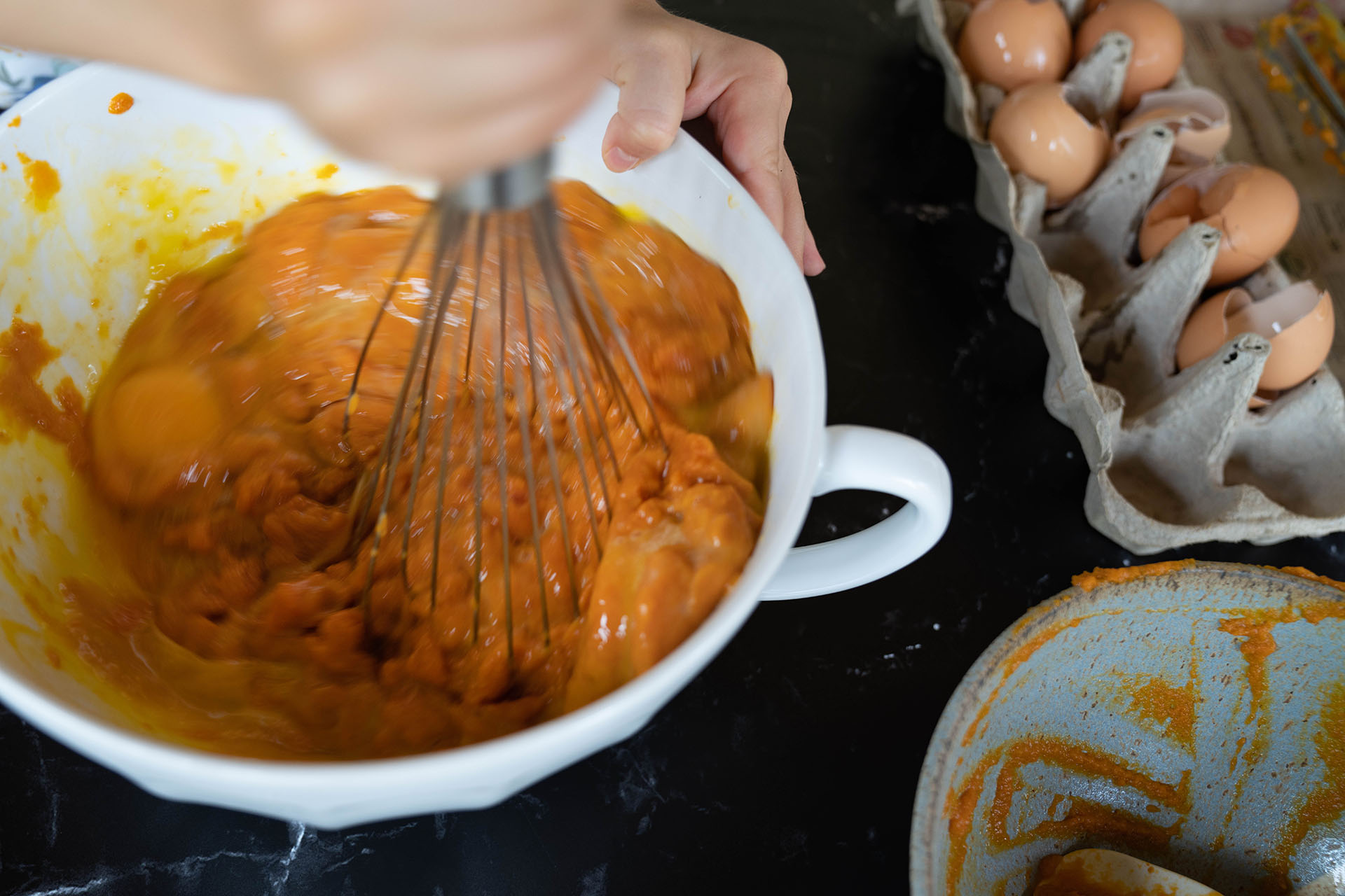 In a large bowl, combine the pumpkin and eggs. Beat until well combined.