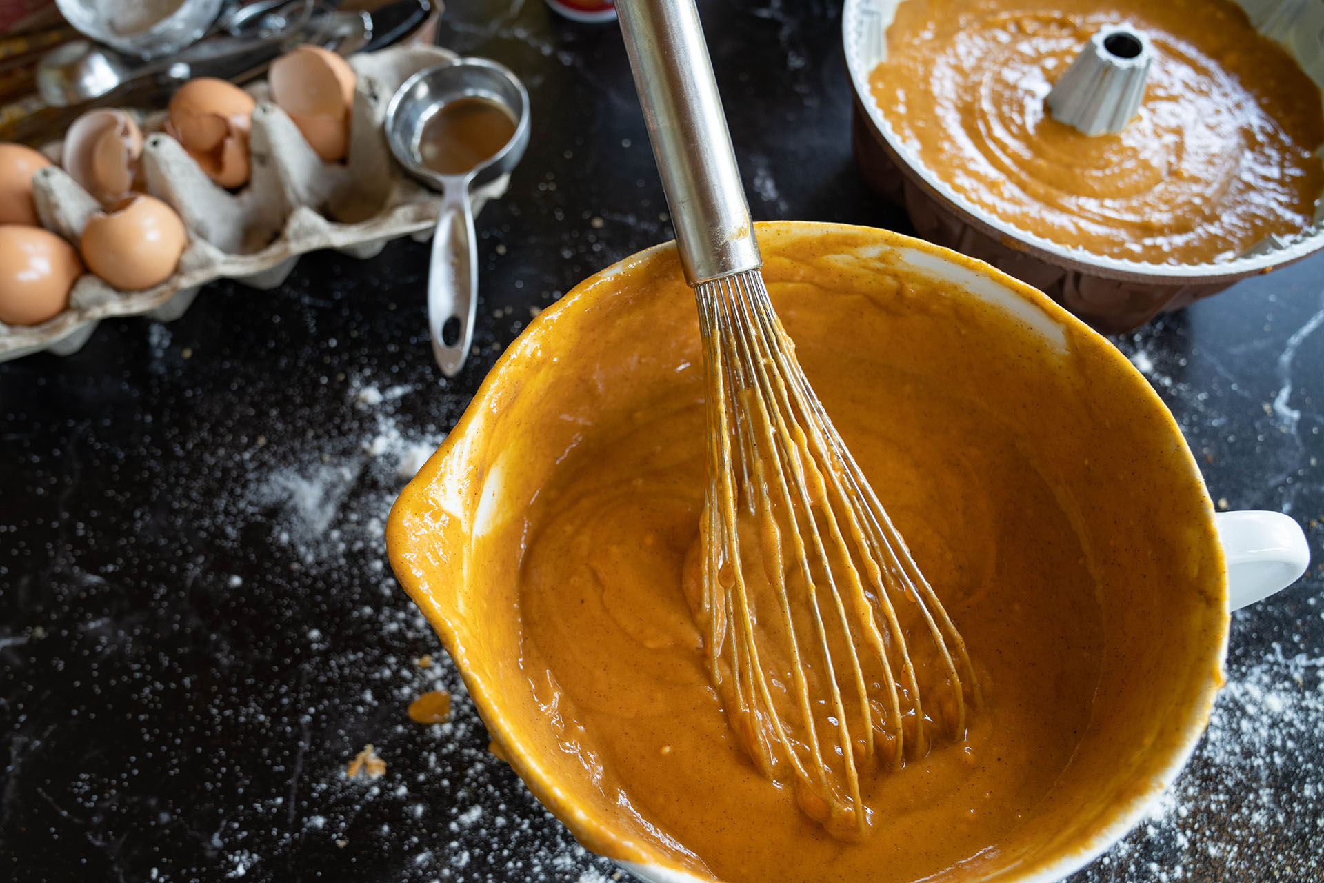 Pumpkin bread season begins in September and runs until the end of November. And, yes, I recognize that the recipe is misleading by the name pumpkin bread which is then baked in a Bundt pan. Because the original recipe was labeled pumpkin bread, we have always called it pumpkin bread. I’m not sure when my mother decided it would be tastier baked in a Bundt pan, but the geometric, round shape yields an extra element of style to the humble pumpkin bread.