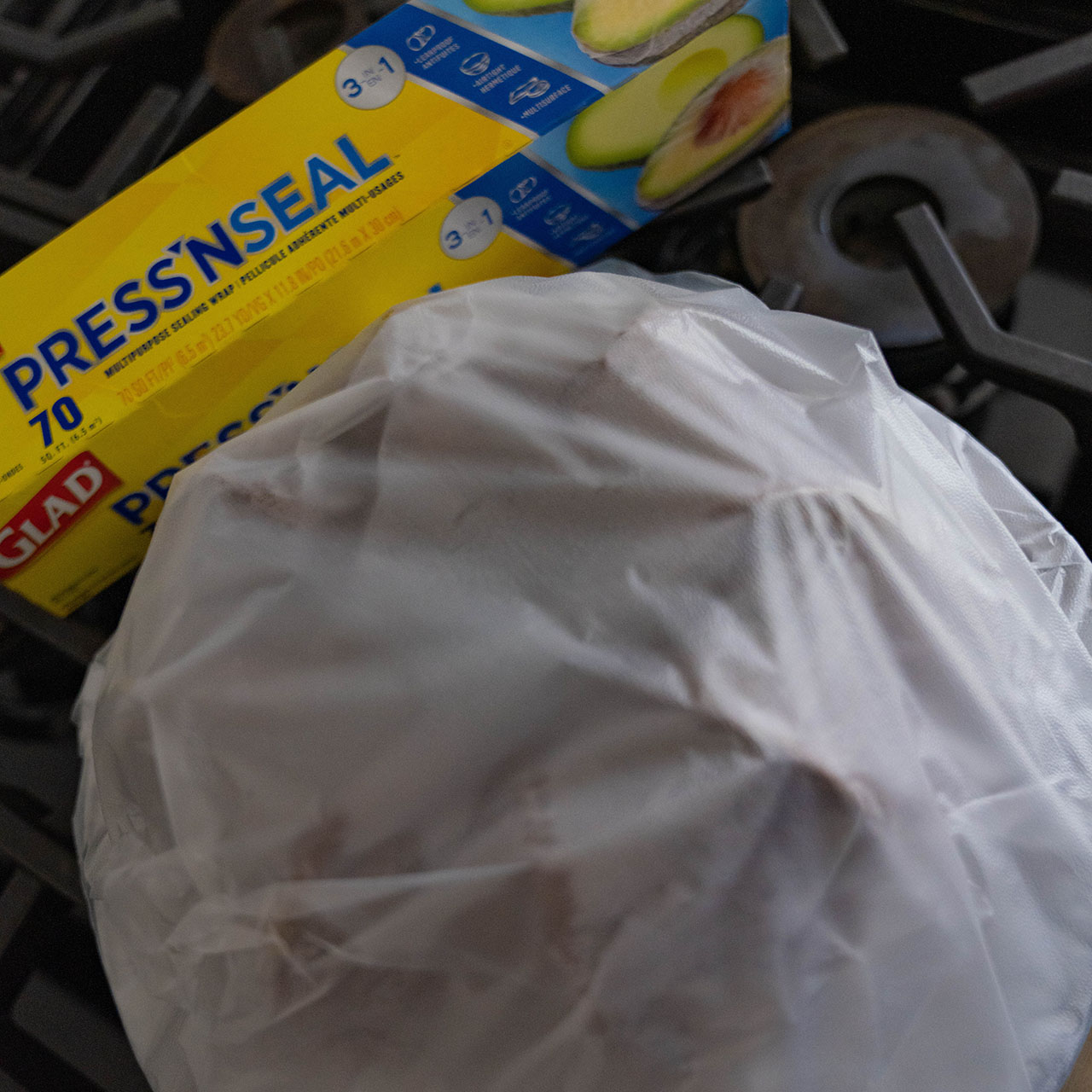 Bake for 35-40 minutes. Immediately invert onto a plate and cover with press and seal.